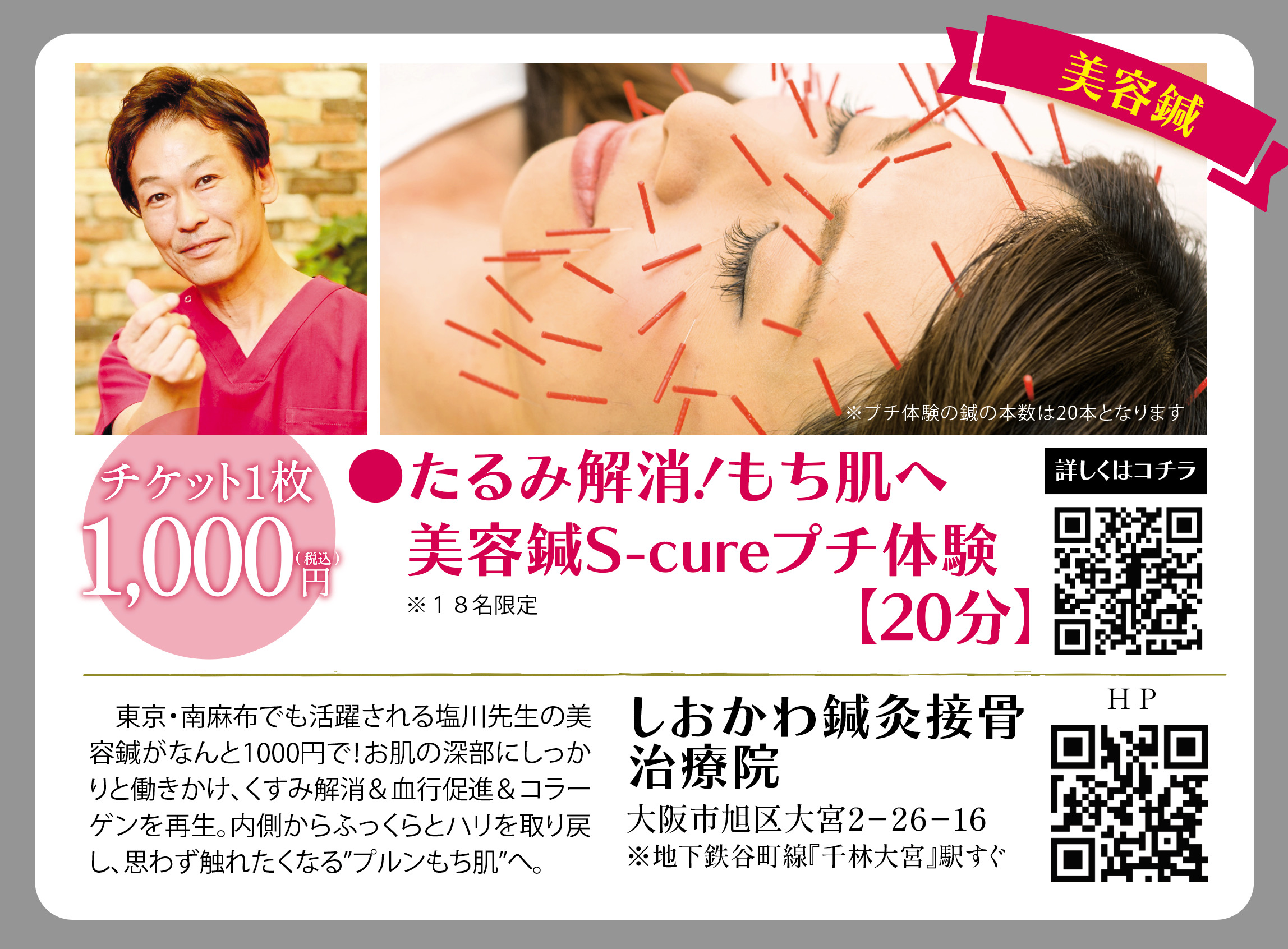 確実に美容鍼のプチ体験を受けてみたい方は、千林大宮の院でのご体験をオススメいたします。