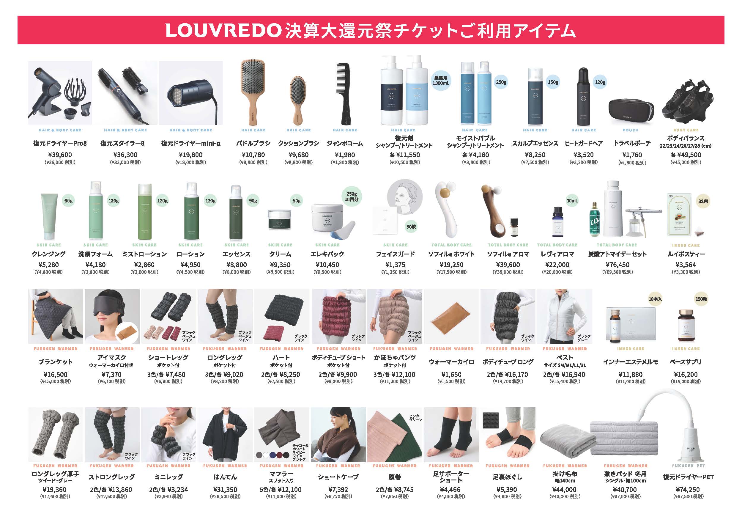 もらったチケットは、復元パドルブラシや復元レッグウォーマーなどのルーブルドーさんのキャンペーン対象商品の購入に使用できます!