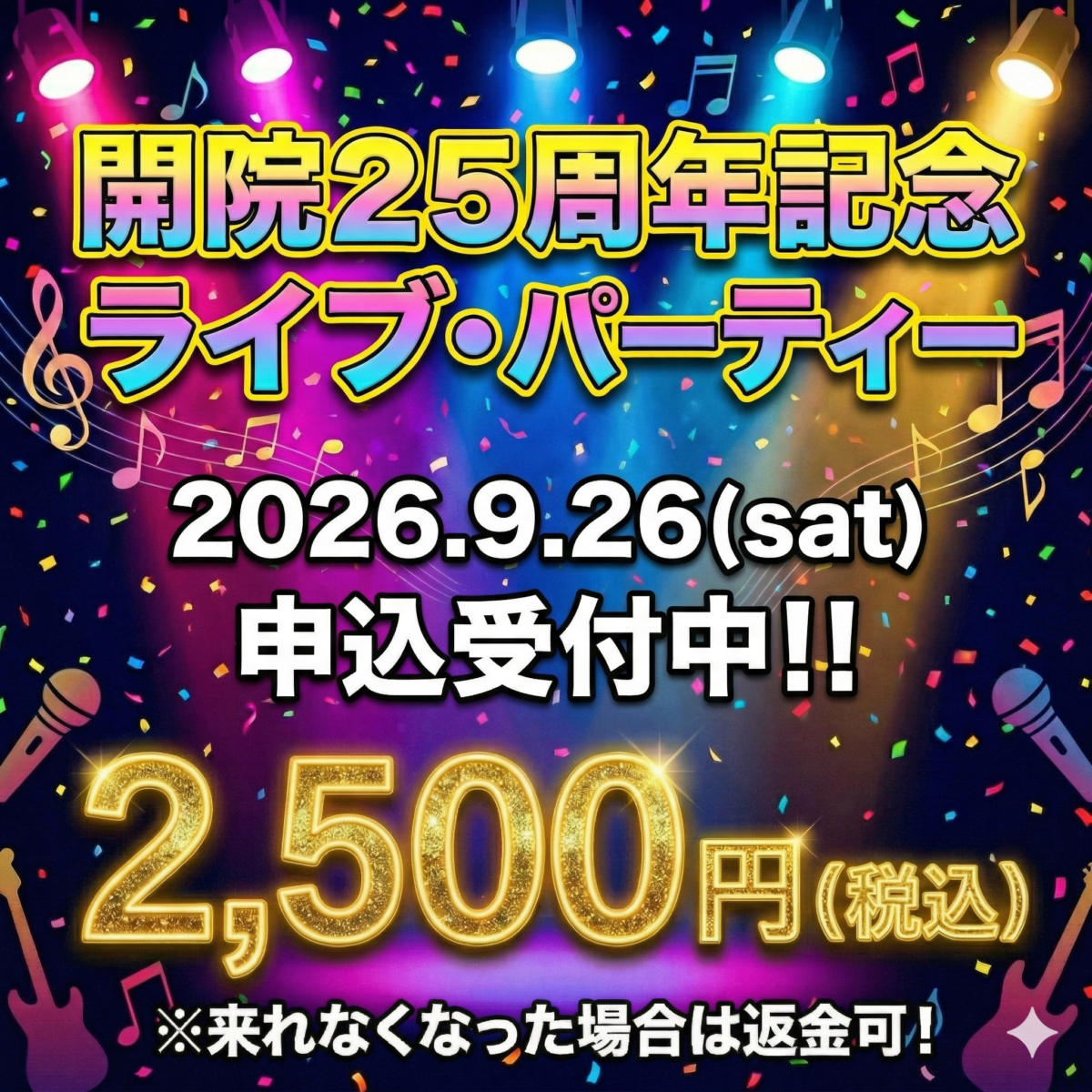【申込受付中!】開院25周年記念「しおちゃんバンド Live Party」!